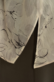 брюки-полиэстер - 65%, вискоза- 32%,эластан-3%, блуза и кардиган- полиэстер-95%,эластан-5%