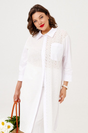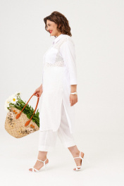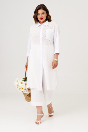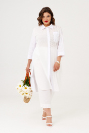 Белый летний комплект из платье-рубашки и свободных брюк Almirastyle 372