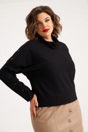 Стильный женский комплект состоит из джемпера и юбки. Джемпер свободного покроя, выполнен из трикотажного полотна "лапша", со спущенной линией плеча. Отделкой служат отлетные планки с пуговицами по линии плеча и рукава. Воротник - хомут. В комплекте юбка без подкладки из эко-кожи. По переду иммитация косой застежки со шлицей внизу. Пояс притачной, над боковыми швами - резинка. Застежка сзади на потайную молнию. Сочетание контрастных цветов и видов ткани делает изделие элегантным. 50 размер: ОГ 112 см, ОТ 108 см, ОБ 106 см, длина рукава 69 см, длина джемпера 55 см, ОТ 80-100 см, ОБ 110 см, длина юбки 70 см. 52 размер: ОГ 116 см, ОТ 112 см, ОБ 110 см, длина рукава 69 см, длина джемпера 55 см, ОТ 84-104 см, ОБ 114 см, длина юбки 70 см. 54 размер: ОГ 120 см, ОТ 116 см, ОБ 114 см, длина рукава 69 см, длина джемпера 55 см, ОТ 86-106 см, ОБ 118 см, длина юбки 70 см.