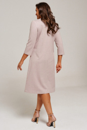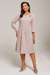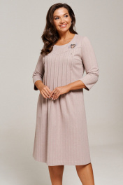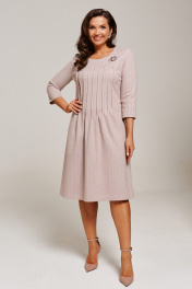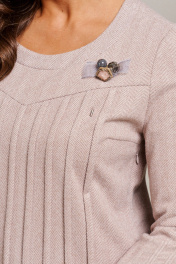 Платье с отрезной кокеткой и бантовыми складками по переду. Длина изделия 46,48р.-101 см, 50р.-103 см, 52,54-105 см. Рукав втачной длиной 48 см. Вырез горловины круглый. Застежка на потайную тесьму-молнию в боковм шве. Декоративная брошь в комплекте. Внимание! Брошь может отличаться от фото.