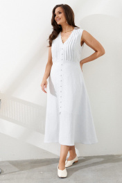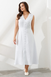 Платье женское льняное, длиной 123 см. Изделие отрезное по линии талии, с защипами по верхней части переда. Застежка в боковом шве на потайную тесьму-молнию. Платье на подкладке.