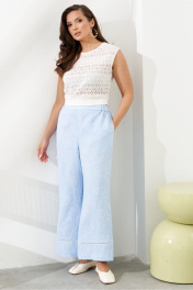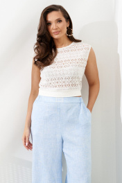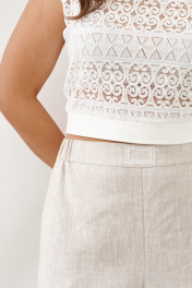 * Блузка укороченная прилегающего силуэта из кружевного полотна длиной 42 см. * Плечевой шов спущенный. * Отделочная планка из трикотажного полотна по низу блузки. Планка собрана на резинку по спинке