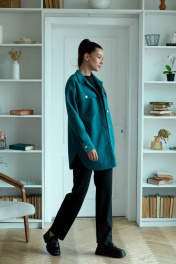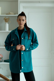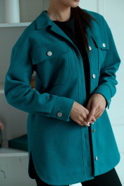 Рубашка из шерстяной пальтовой ткани с карманами Ambera 323 бирюза