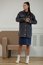 Рубашка из тёплой пальтовой ткани с добавлением шерсти прямого кроя со спущенной линией плеча. Горловина обработана рубашечным воротником с отрезной стойкой. Застёжка центральная на петли-пуговицы. Спереди есть нагрудные карманы. Низ рукава обработан притачной манжетой, застёгивается на петли-пуговицы. По боковым швам разрезы. Изделие на подкладе.