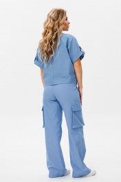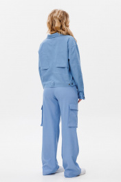 Брюки прямого силуэта,на притачном поясе с застежкой на тесьму-молнию по переду. По боковым угловые карманы. По левому и правому полотнищу брюк накладной карман "Книга" с клапаном.