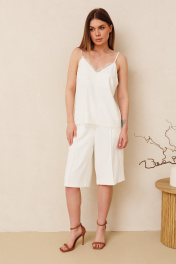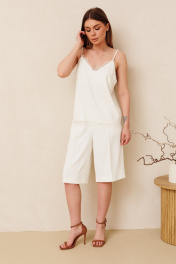 Шорты-Бермуды женские,свободного силуэта,на поясе со шлевками.Застежка на молнию и пуговицу.По переду заложены складки.По бокам действующие угловые карманы