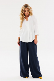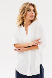Белая прямой блузка из текстиля с V-образным вырезом Amberа Style 1093-1 молоко