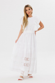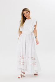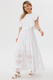 Платье с рельефами и кружевной полоской из хлопка Ambera Style 1096 молоко