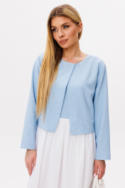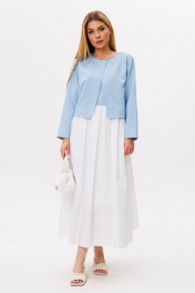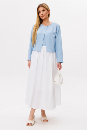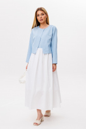 Платье женское свободного силуэта с имитацией накидки.Платье отрезное по линии талии.Верхний лиф на запах по переду ,и нагрудной вытачкой.Вырез горловины круглый,по спинке застежка на потайную молнию.Юбка на сборке по талии.