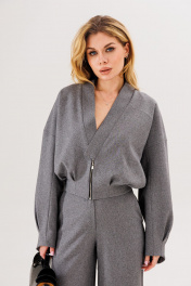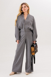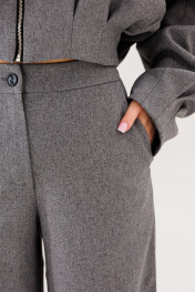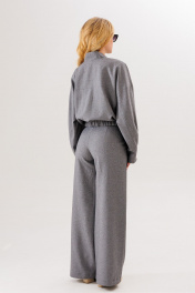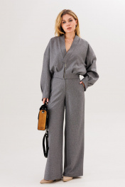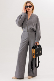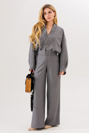 Брюки прямого силуэта на притачном поясе. По переду застежка на тесьму-молнию. По боковым действующие карманы.