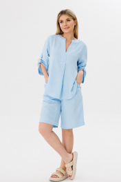 Блуза и шорты свободного кроя из вискозы и текстиля Ambera Style 2076 голубой
