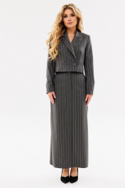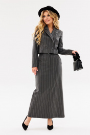 Деловой костюм из текстиля с укороченным жакетом и юбкой Ambera Style 2083 полоска_серый