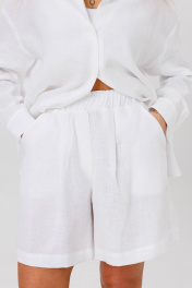 Стильный льняной oversize-костюм AMIE в свободном стиле, состоящий из рубашки и шорт. Рубашка свободного силуэта. Воротник рубашечного типа. Застежка центральная на петли и пуговицы. Рукав втачной, длинный, снизу рукава притачная манжета, застегивающаяся на петлю и пуговицу. Линия плеча спущена. Спинка с кокеткой. Низ фигурный с удлиненной спинкой. Длина изделия 84 см, длина рукава от горловины 78 см. Шорты широкие. Пояс притачной на резинке. Передние половинки шорт со складками и функциональными карманами. Длина по боковому шву 49 см., по шаговому шву 18 см. Костюм выполнен из качественного белорусского льняного полотна (пр-во Орша). Ткань не тянется. В больших размерах костюм представлен в нашей линейке MaCherie (модель 3152) Идеальный стильный образ для прогулки на свежем воздухе с друзьями. Рубашку и шорты можно приобрести раздельно. Модели 6001 и 7001 соответственно.