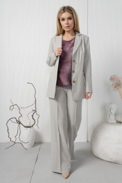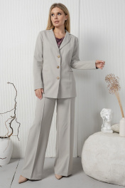 Деловой жакет из льна с карманами и удлинённый крой AMORI 2176 светло-серый