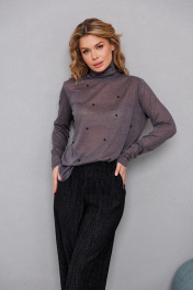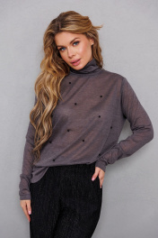 Трикотажная блуза с бусинами-водолазка для повседневного стиля AMORI 6473 графит
