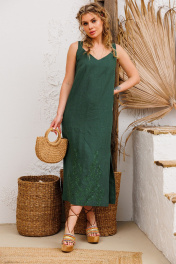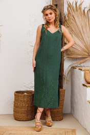Зеленый сарафан из льна с вышивкой и молнией AMORI 9799 изумруд