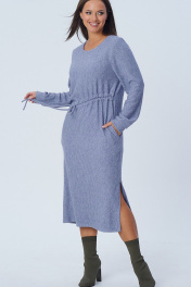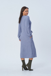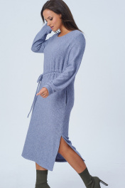 Демисезонное трикотажное платье с разрезом и кулисой по талии AMORI 9814 голубой