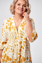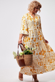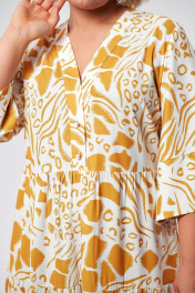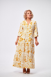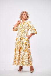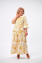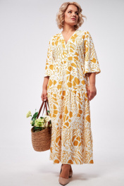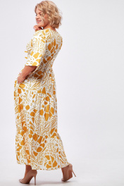 Платье макси с воланами и застежкой на пуговицы AMUARt 1008 горчица+белый
