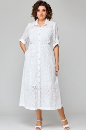 Платье из хлопка с кокетками и карманами AMUARt 1010-1 белый