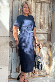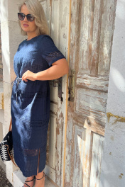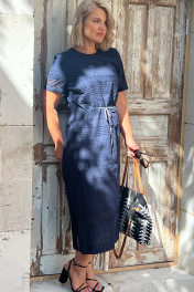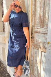 Платье женское из 100% хлопка подарит легкость и комфорт в жаркие летние дни. Ткань шитье в сочетании с прямым силуэтом идеально для торжеств и повседневной носки. Платье на подкладке, по талии кулиса с декоративным шнурком. По полочке круглый вырез горловины, по спинке V-образный вырез для удобства декорирован перемычкой. Низ платья фигурный. Рукав втачной, короткий.