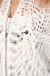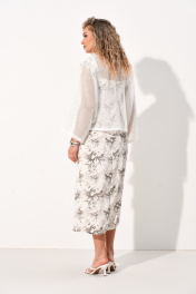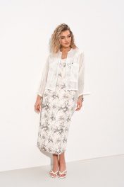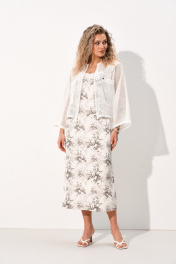 Комплект женский состоящий из платья длиной миди полуприлегающего силуэта, выполненного из легкой сатиновой ткани и бомбера из сетки на основе хлопка. Платье со средним швом по спинке в котором обработана тесьма-молния и таллиевыми выточками. По полочке обработана нагрудная выточка, вырез горловины фигурный благодаря чему выгодно подчёркивает грудь любого размера. Платье без рукавов. Бомбер свободного силуэта с круглым вырезом горловины, центральной застёжкой на тесьму молнию. По полочке обработаны накладные карманы. Рукав цельнокроеный, длиной 7/8.