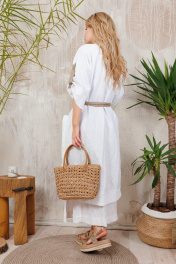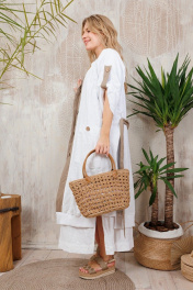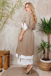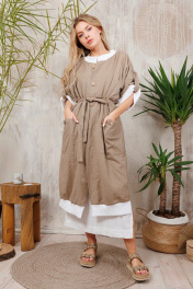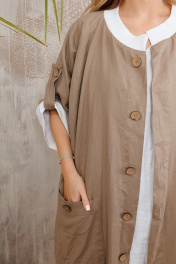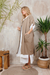 Двусторонний кардиган из льна на пуговицах. Можо носить на любую сторону в зависимости от настроения. Плюс удобные стильные большие карманы. Все изделия коллекции "АМУЛЕТ" имеют натуральную ткань, сложную обработку всех внутренних швов и энергосберегающий крой. В подарок идет шопер с логотипом бренда. Рост 164: ДИ 113 см, ДР от горловины 44 см Рост 170: ДИ 119 см, ДР от горловины 47 см