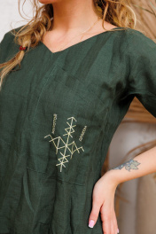 Платье колокольчик с ассиметричнымнакладным карманом на грудина на котором вышита руна "ЗОЛОТОЙ ДРАКОН". Она олицетворяет удачу и достаток, успех во всех начинаниях и радость в воплощении задуманного. в этом платье ВСЁ легко решается, достигается и получается! Низ юбки и рукавчики имеют красивые вырезы уголками. Платья бренда АМУЛЕТ создаются по славянским законам энергообережной одежды. Имеют перекидной крой и нет швов по главным энергоцентрам человека и они все пошиты закрытым способом по изнанке платья. используется только натуральная ткань и фурнитура. В подарок платье упаковывается в шопер с символом бренда. Рост 164: ДИ 128 Рост 170: ДИ 134