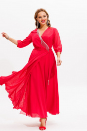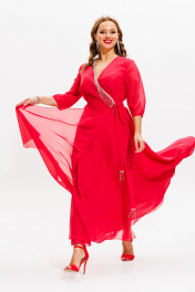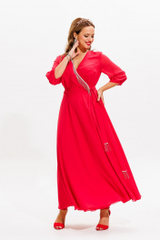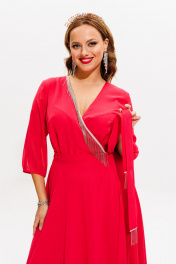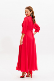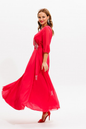 Платье нарядное из блузочной ткани с бахромой Anastasia 1113 коралл