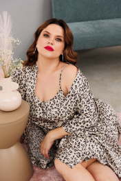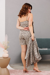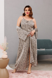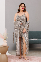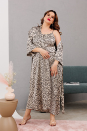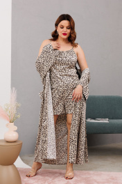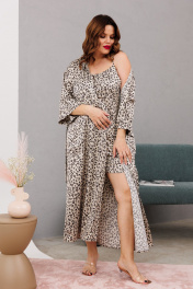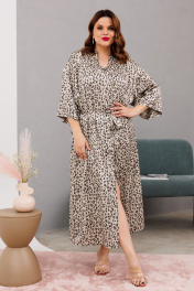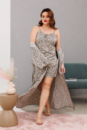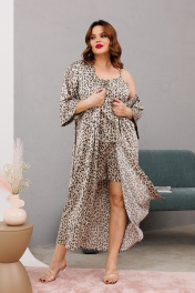 Домашний костюм халаит с запахом из атласа и сетки Anastasia 1189 платина