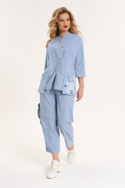 Оригинальный женский костюм от бренда Anastasia, идеальный выбор для повседневной носки, офиса и прогулок. Стильный и комфортный костюм сочетает в себе современный дизайн и удобство, что делает его универсальным вариантом на каждый день. Костюм состоит из жакета и брюк. Жакет свободного силуэта, без подкладки, с V-образным вырезом и асимметричной застежкой на пуговицы. По переду расположены накладные карманы, один из которых дополнен декоративным принтом. Рукав втачной, длиной 3/4, линия плеча слегка спущена, что добавляет образу легкости и актуальности. Брюки прямого силуэта, укороченные, со средней посадкой. Пояс комфортный, обеспечивает удобную посадку и свободу движений. Крой брюк визуально вытягивает силуэт и подходит для разных типов фигуры. Пояс на резинке, по бокам карманы. Стильный женский костюм отлично подойдет для офиса, прогулок, путешествий и повседневной носки. Отдельные элементы костюма легко сочетаются с другими вещами гардероба. Длина спинке:(48-52)-70см, (54-58)- 73см. Длина рукава:(48-58)-33см. Длина брюк (48-50) -93см, (52-58)-95см