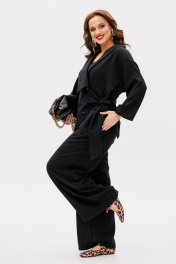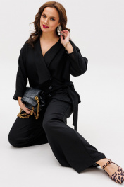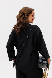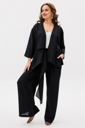 Оригинальный костюм от бренда Anastasia- идеальный выбор для любого случая. Этот костюм сочетает в себе элегантность и комфорт, что делает его подходящим как для деловых встреч, так и для праздничных мероприятий. Костюм женский 2-хпредметный (жакет и брюки) из легкой текстильной ткани под марлевку . Жакет прямого силуэта со спущенным плечом. Воротник распахнутый прямоугольный на отрезной горловине. В полочке ассиметричный низ, в качестве застежки - пояс-завязка. Спинка асимметричная с подрезом в виде скалдки. В качестве декора - пуговицы (по краю борта полочки и по складке спинки). Рукав одношовный. Брюки прямые, по передней части идет втречная скадка и боковые карманы. Пояс на резинке. Длина по спинке: (48-52)-70см, (54-58)-72см. Длина рукава: (48-52)-52см, (54-58)-53см. Длина брюк (48-52) -102см, (54-58)-103см