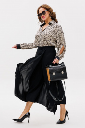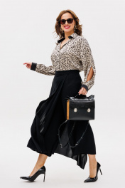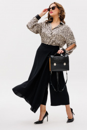 Бренд белорусской женской одежды Anastasia представляет брюки-юбку необычного кроя. С этой моделью вы создадите множество модных образов, от классических до самых ярких и нестандартных. Брюки прямые, укороченные. Сбоку застежка молния. Пояс отрезной, по спинке вставлена резинка. С одной стороны брюк идет отлетное полотнище в виде юбки. Внешнее сходство брюк с юбкой делают этот предмет гардероба женственным и привлекательным, а крой широких брючин помогает чувствовать себя комфортно в любой ситуации. Комплект идеален на жаркую погоду в офис, на прогулку или торжество. Идеально подобранная ткани не даетет эффекта наслоения и брюки выглядят изящно и легко. Длина брюк (48-52)-83см, (54-58)-85см .