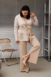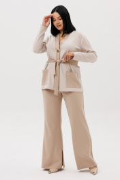 Нежный и комфортный женский комплект в стиле Old money от бренда Anastasia, идеальный для любого случая. Этот комплект сочетает в себе элегантность и комфорт, что делает его подходящим как для деловых встреч или прогулок. Комплект состоит из жакета и брюк. Жакет прямого силуэта. Застежка- планка с пуговицами. По полочке идут накладные карманы. Рукав втачной, одношовный. Подчеркнуть талию можно съемным поясом. В качестве декора- брендированная нашивка на кармане, перекликающаяся с золотыми пуговицами. Стильный комплект отлично подойдет для долгих прогулок или для работы, для офиса. Брюки -клеш, пояс на резинке. По внутреннему срезу по низу идут разрезы. Отдельный части костюма легко будут сочетаться с вещами из Вашего гардероба. Модель можно отнести к стилю кэжуал. Костюм можно носить с туфлями, кроссовками или ботинками. Обязательно добавьте наш бренд в избранное и следите за новинками, распродажами, скидками и акциями! Хороших покупок от «Анастасия». Длина (по спинке):(50-54)- 68см, (56-60)-71 см. Длина рукава: (50-60)- 60см. Длина брюк: (50-54):- 106см, (56-60)- 108см.
