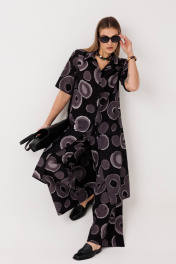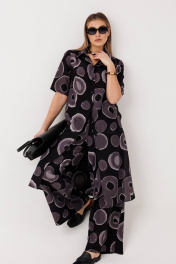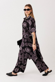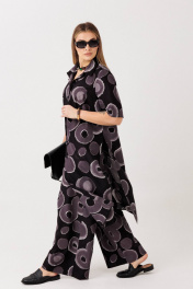 Костюм женский 2-х предметный (блузка, брюки) из легкой хлопковой ткани. Шикарный, стильный женский костюм от бренда Anastasia, идеальный для любого случая. Этот костюм сочетает в себе элегантность и комфорт, что делает его подходящим как для деловых встреч или домашней одежды, так и для праздничных мероприятий. лузка длинная, прямая. По переду нагрудные выточки с проймы. По боковым швам разрезы. Воротник на отрезной стойке, застежка планка на петли и пуговицы.Рукав втачной одношовный. Брюки-палаццо прямые широкие, пояс на резинке, по низу широкая подгибка. Имеет оригинальный и современный крой, придающий образу особую изысканность. Брюки палаццо, благодаря своему поясу на резинке, могут растягиваться до большого размера, поэтому подходят для любой фигуры, будь то девочка-подросток или взрослая женщина. Длина блузки: (50-54)-112 см., (56-60)-114 см. Длина рукава: (50-54)-32 см., (56-60)-34 см. Длина брюк: (50-54) - 102 см, (56-60) - 105 см