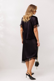 Женский элегантный костюм от Anastasia, подходящий для нарядной и повседневной носки. Костюм женский 2-х предметный из атласной ткани с отделкой из деликатного кружева (блузка, юбка). Ажурное кружево, деликатно украшающее низ юбки. горловину и рукава блузки, добавляет образу романтичности и утонченности. Отлично подойдет на любой тип фигуры, подчеркнет вашу женственность. Блузка прямого силуэта со спущенным плечом, V-образным вырезом и косым низом. Юбка, выкроеная по косой с асимметричным низом, создает женственный и изысканный силуэт. Пояс на резинке. Юбка с кружевом внизу станет идеальным выбором для создания как повседневных, так и праздничных образов. Длина блузки (48-52)- 55см, (54-58)- 59см . Длина юбки с кружевом: длинная сторона (48-58)- 89 см. короткая сторона (48-58)-70см.
