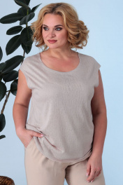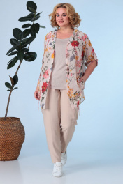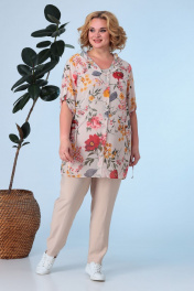 Блуза - полиэстер 100%. Топ - вискоза 97%, полиэстер 3%. Брюки - вискоза 90%, полиэстер 10%.