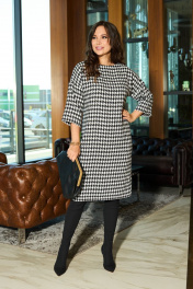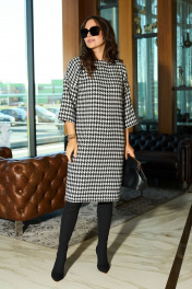 Платье женское из теплой, текстильной ткани "гусиная лапка". Платье прямого силуэта длиной за колено. Перед цельный. Спинка со средним швом, застежка на потайную молнию, в низу разрез, горловина овальной формы. Рукав со спущенным плечом. Данная модель прекрасная покупка для осеннего сезона или холодной зимы. Длина платья: (48-52)-98 см., (54-56)-100см. Длина рукава: (48-52)-29 см., (54-56)-30см.