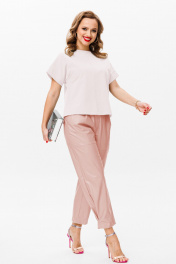Демисезонный комплект из трикотажа и эко-кожи изящный стиль Anastasia 979 пыльная_роза