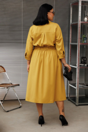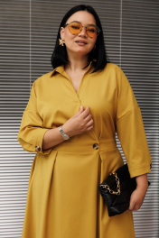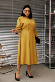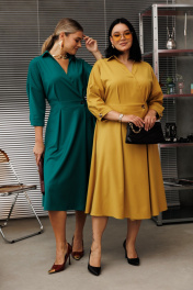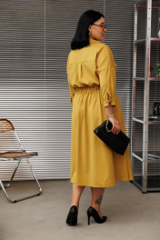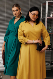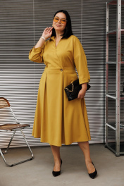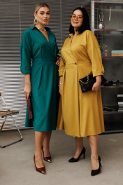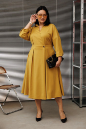 Элегантное женское палтье из костюмной ткани необычного кроя станет изюминкой вашего гардероба. Платье полуприлегающего силуэта, отрезное по линии талии со спущенным плечом. Рукав 3/4 длиный на отрезной манжете. По полочке идут защипы-складки в верхней и нижней частях, запах - на петли и пуговицы по подрезу. По нижней части платья запах идет в виде складки. По спинке кокетка со складкой, по подрезу вставлена резинка. Юбка-полусолнце с односторонними складками по полочке, по бокам карманы. По горловине воротник на отрезной стойке. Платье будет идеально смотреться с туфлями, ботинкаи и сапогами. Длина по спинке: 117см. Длина рукава с манжето 29см.