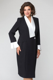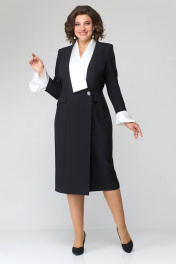 Платье за колено с контрастной отделкой и рельефами ANASTASIA MAK 1124 чёрный