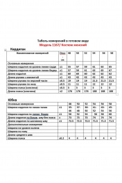 Костюм состоящий из кардигана и юбки выполнен из трикотажного полотна в рубчик. Кардиган прямого силуэта. Полочка кардигана с V - образной горловиной. Спинка цельная. Борта полочки и горловина спинки обработаны притачной планкой. Пройма кардигана углубленной формы. Рукав длинный, одношовный. В области талии по боковым швам настрочены шлевки, через которые продет пояс, завязывающийся спереди. Юбка, облегающая бедра, длиной за колено. По талии на притачном поясе с эластичной тесьмой. Юбка на подкладке.