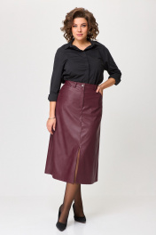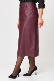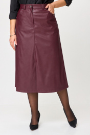 Юбка из экокожи А-силуэта длиной ниже колена с застежкой и разрезом ANASTASIA MAK 1215 винный