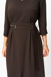 Элегантное и стильное платье от бренда Anastasia Mak идеальный выбор для современной женщины, которая ценит комфорт и стиль. Платье прекрасно подойдет на каждый день, в офис, для праздника или вечеринки. Платье прямого силуэта, длиной за колено, выполнено из однотонной ткани. Полочка платья с центральным швом и нагрудными вытачками, В области талии обработаны складки-защипы, в нижней части среднего шва разрез. Горловина V-образной формы. Спинка со средним швом, в верхней части которого обработана потайная молния. По боковым швам в области талии настрочены шлевки через которые продет пояс с декоративным элементом в виде молнии и застежки на полукольца. Рукав длиной ¾, втачной, с бантовой складкой по верхней части рукава