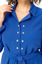 Элегантное и стильное платье от бренда Anastasia Mak идеальный выбор для современной женщины, которая ценит комфорт и стиль. Платье отлично подойдет на каждый день, в офис, для праздника или вечеринки. Платье прямого силуэта, длиной за колено, выполнено из однотонной ткани. Полочка платья с центральным швом, в верхней части которого выполнена оригинальная застежка на петли и пуговицы, в нижней части центрального шва полочки обработана шлица. Полочка с нагрудными вытачками. Горловина круглой формы с воротником рубашечного типа. Спинка со средним швом. Рукав втачной, одношовный, длинный, по низу со складкой и притачной манжетой. Манжета с разрезом по низу и декором из пуговиц. По боковым швам в области талии настрочены шлевки, через которые продет пояс, завязывающийся спереди.