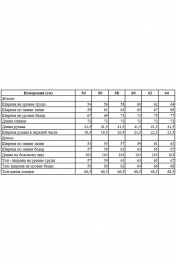 Костюм состоит из жакета, брюк и топа. Жакет и брюки выполнены из однотонного трикотажного полотна двух контрасных цветов. Топ выполнен из трикотажного полотна . Жакет с пропезными карманами на молнии. Брюки облегающие по бедрам и заужены к низу. Брюки на притачном поясе с эластичной тесьмой.