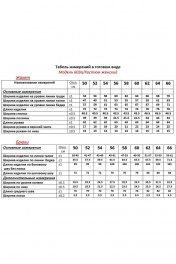 Костюм состоит из жакета и брюк. Костюм выполнен из однотонной ткани. Жакет прямого силуэта, без подкладки. Полочка жакета с вертикальными рельефами и двубортной застежкой на две пуговицы. Горловина V-образной формы. На нижней части полочки выполнены накладные карманы. Спинка со средним швом и отрезными бочками. Рукав длинный, втачной, двухшовный. Брюки со стрелками, длиной до косточки. В верхней части брюки прилегающие, в колене свободные и к низу зауженные. По передним половинам обработаны карманы, в среднем шве застежка на молнию. На задней половине обработаны талиевые вытачки. Брюки на притачном поясе с эластичной тесьмой и шлевками. Застежка по поясу на петлю и пуговицу.