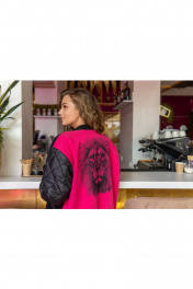 Куртка-бомбер супер модная и современная, с застёжкой на тесьму-молнию, с боковыми карманами на молнии, рукава стеганные с синтепоном, спинка с очень модным принтом, на подкладке.
