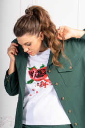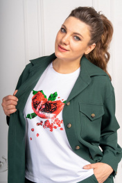 Комплект женский состоящий из блузки (рубашки) и брюк. Рубашка из мягкой ткани прямого силуэта с центральной бортовой застёжкой на петли и пуговицы, воронитк стояче-отложной, полочка с нагрудыми накладными карманами застёгивающиеся на петлю и пуговицу. Спинка с отрезной фигурной кокеткой, со складкой по центру. низ фигурный. рукава втачные двухшовные с притачной манжето застёгивающейся на петли и пуговицы. Брюки жеские полуприлегающего силуэта на притачной поясе,застёгивающимся на петлю и пуговицу, по переду с центральной застёжкой на тесьму-молнию. с боковыми наклонными карманами, с защипами по линии канта, по поясу спинки резинка. 50 52 54 56 58 Жакет Обхват груди 122 126 130 134 138 Обхват талии 122 126 130 134 138 По низу 126 130 134 138 142 Длина спинки 74 74 74 74 74 Длина рукава с плечом 71 71 71 71 71 Ширина рукава вв 40 42 44 46 48 Ширина рукава вн 25 25 25 26 26 Брюки Обхват талии 80-100 84-104 88-108 92-112 96-116 Обхват бёдер 110 114 118 122 126 Длина с поясом 96 96 96 96 96 Ширина в колене 48-49 50 51 52 53 Ширина по низу 38 39 40-41 41-42 42-43