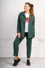 Комплект женский с рубашкой и брюками в стиле на каждый день Andina 933-2 изумруд