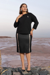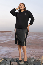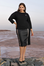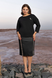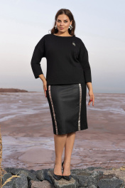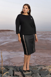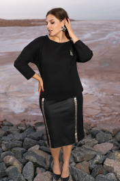 Черный костюм юбочный из плотного трикотажа с эко-кожей Andina 960 черный